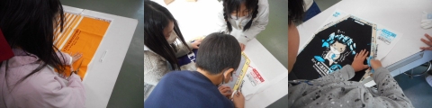 家庭科で,エプロンをつくっていくのに,今日は,裁つ作業=布を切る作業でした。