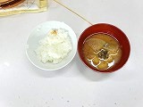 お味噌汁は、煮干しの頭やはらを取り、出汁を取るところから行いました。ご飯も鍋でガスを使って炊きました。
