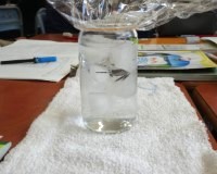 4年生が理科の時間に、空気中の水蒸気を取り出す実験をしていました。