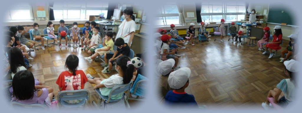 1年生はこの時間は、お楽しみ会で「爆弾ゲーム」をしていました。