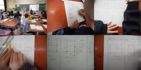 共有の課題(初めの問題)はL字型の形の面積を求める問題でした。