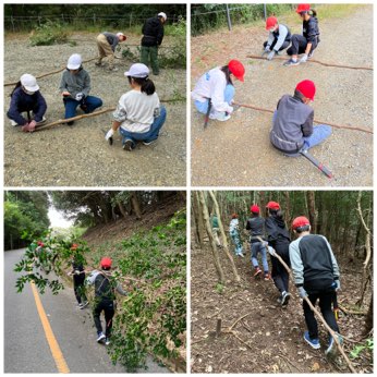 切った木を運んで、広いところで、ノコギリほど長さに切る作業を始めました。