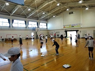 今日は、二重跳びの練習をしました。二重跳びに取り組む前に、お手本として3人の人が体育館の舞台に上がり、とび方を披露しました。前向きや横向きになって、上手に跳ぶためのポイントを見せてくれました。その後、一人ひとりが二重跳びに挑戦しました。