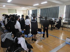 1限目は体育館に入って学年全体でマナーの重要性やあいさつの仕方について、2限目以降は各クラスであいさつの仕方を復習し、身だしなみや言葉遣いについて、一つずつ丁寧に教えていただきました。