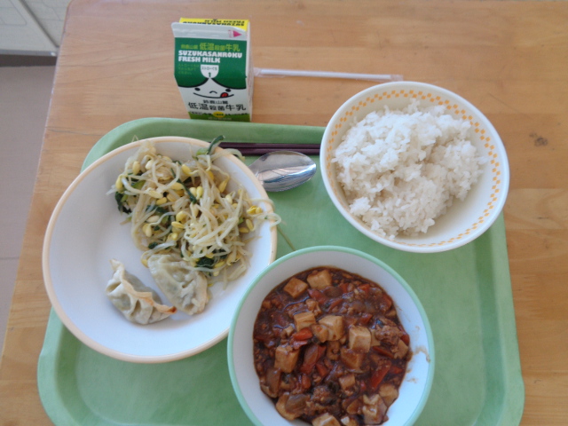 本日のメニューは麻婆豆腐と焼き餃子、ナムルです。