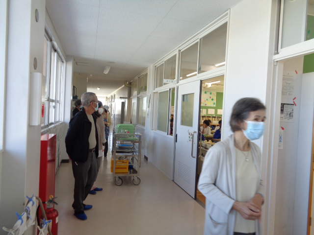 その後、給食のようすを視察。準備もとても手際よくなりました。