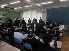 本日1年4組で、岐阜聖徳学園大学の山田教授に道徳の示範授業をしていただきました。(本校は昨年度までの3年間、本市の道徳推進校の指定を受けており、山田教授のご指導を受けていました。)題材は「仏の銀蔵」で内容項目は順法精神や公徳心です。生徒の活発な意見交換とそれを引き出す教授の絶妙な技術で「正しく生きるとは」ということについて、認識を深めました。的確な教材分析、発問の工夫、こどもの発言をつなげて授業をつくる技術など教員にとっても大きな学びとなりました。事後研修では振り返りだけでなく、発問づくりなど実践研修も行いました。これからの授業づくりにしっかりといかしていくことが大切です。