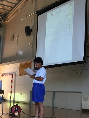 各クラスの代表二名による発表はどれも堂々としたもので、