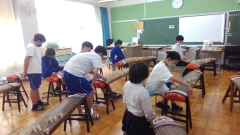 A,B組では、3年生が1年生に教える形で琴の練習をしていました。爪のつけ方、弦のはじき方などの基礎を先輩が隣にきて丁寧に教えていました。先輩から後輩へ、伝統を引き継いてほしいですね。