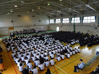 といった流れで進んでいきました。3時間目には暁高等学校の岩木和樹先生に学年合唱をご指導いただきました。