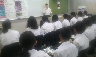 あるグループは,高田馬場にある日本外国語専門学校で,英語の勉強中。授業はオールイングリッシュです。