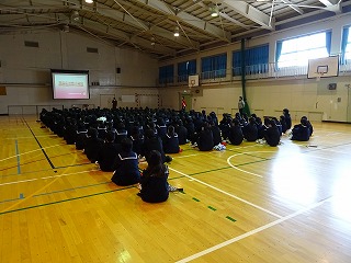 本日3年生を対象に薬物乱用防止教室が開かれました。三重県警察本部生活安全部少年課の渡邉義登さんにお越しいただき、ご講演いただきました。薬物の使用は1回使っただけでも犯罪になり、やめることができなくなってしまう恐ろしいものであるとともに、近年、身近な先輩や友人に誘われる事象も増えており、誰にでも起こり得ることであるということを教えていただきました。また、もし先輩や友人に誘われた際にどのように断るのがよいのかを実演を交えながら解説していただきました。ありがとうございました。