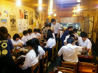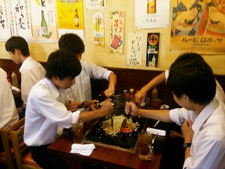 最後の昼食は、クラスごとに、一軒のお店を貸し切り、東京名物のもんじゃ焼きをいただきました。各お店独自のもんじゃを、多い班は8枚もいただきました。