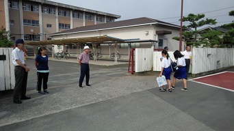 保護司さんによる挨拶運動が行われました。1学期も残りわずかです。暑くなってきました。熱中症には気を付け、乗り切りましょう。