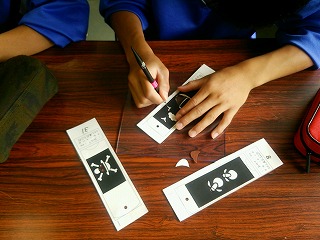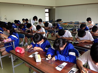 自然教室、最後の活動、「伊勢型紙」のしおり作りに取り組んでいます。みんな集中して制作しています。