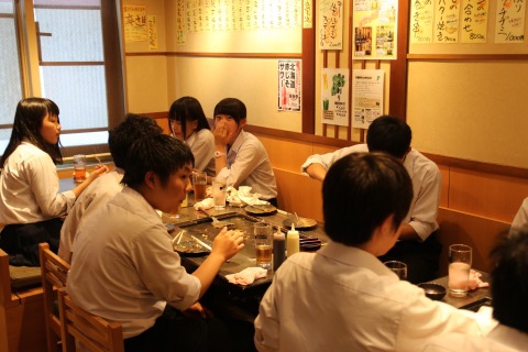 クラスごとにお店を貸し切りで、楽しい食事をとることができました。