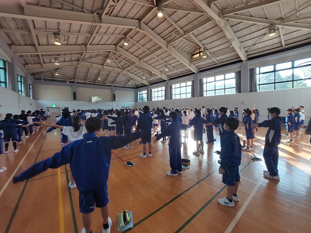 実行委員会からのお話のあとは、朝明中名物リズム体操!