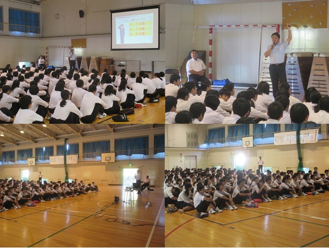 本日、6限目に3年生を対象に講師に北警察署の後藤警部補と県警本部の村林少年育成係長をお招きして、薬物乱用防止教室を行いました。お二人から、覚せい剤や麻薬はもちろん、危険ドラックと呼ばれる薬物は、たとえ1回摂取するだけでも生命に危険を及ぼす恐れのあるという意味で乱用であること、興奮作用や幻覚作用等の脳への障害を及ぼすだけでなく、極端な運動能力の低下から交通事故等により自分だけでなく周りの人の生命も危険にさらすこと、依存性と耐性が強い上に、もし一度止められたとしても何十年に渡り再燃する可能性の強いこと等、薬物の恐ろしさについてスライド画像を用いて大変分かりやすくお話していただきました。本校の子どもたちが卒業後も含めて誰1人として薬物に苦しむことのないことを願います。