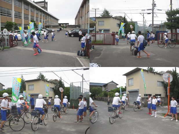 生活委員は、服装面「正しい服装で気をつけて帰りましょう。」、安全委員は、安全面「交通に気をつけて帰りましょう。」、生徒会は、挨拶「さようなら。」を呼びかけることにより、専門委員はもとより、学校全体で自分たちの生活・安全面を見直すこと、また、夏休み前に意識を高めることにより、夏休み期間中も朝明中生としての意識を持てるようにすることが目的です。下校時に、子どもたちの気持ちの良い声が校庭にとび交っています。