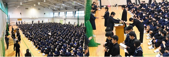 4月13日(水)、5限目に前期学級役員と生徒会専門委員の認証式を行いました。前期の活動は、学級づくり・学校づくりの基盤となります。約6か月間それぞれ、学級・学校をよりよくするために、自分たちのできることを考え、実行していってほしいと思います。