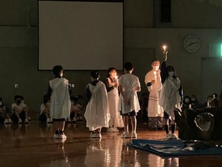 厳かな雰囲気の中、1年生の学年としての誓いを立て、「私の宝物」の発表を行いました。その後、マイムマイムを踊り、キセキをみんなで歌いました。