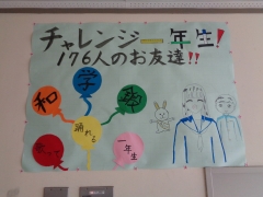 今年の1年生の学年目標は「チャレンジ1年生!176人のお友達!!」です。これから様々なことを学校生活で経験しますが、どんなことにも全力でチャレンジすることができる、そんな学年を目指して我々教職員も一丸となり頑張っていきます。