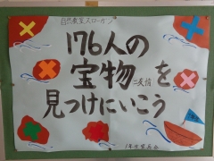 自然教室は1年生で行う初めての大きな行事です。その活動の中で176人それぞれの個性を尊重し、宝物=友情を育むことができる、そんな2日間にしていきたいという思いから「176人の宝物を見つけにいこう」となりました。