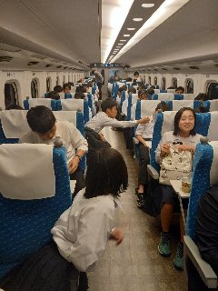 車内は、仲間との三日間を惜しむかのように、楽しそうな笑顔であふれています。