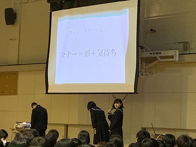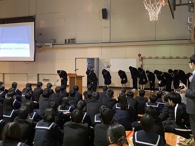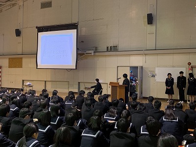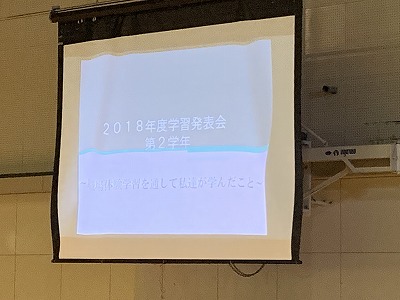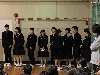 室長たちが2年生を代表して総合的な学習の1年間の振り返りを発表しました。