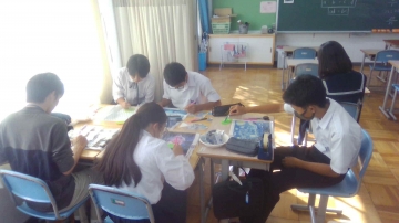 A・B組では、暖かな日差しのもと、集中して作品作りに取り組む姿が見られました。