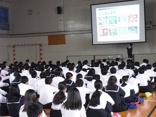 薬物の種類や薬物依存の恐ろしさなど、ビデオ上映とともにわかりやすく説明していただきました。身近なインターネットやSNSなどにも危険が潜んでいることなども学習しました。