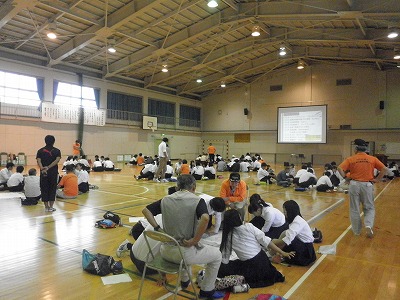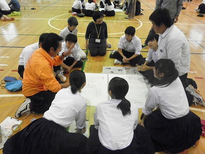 地域貢献学習の一環として避難所運営ゲーム『HUG』を行いました。