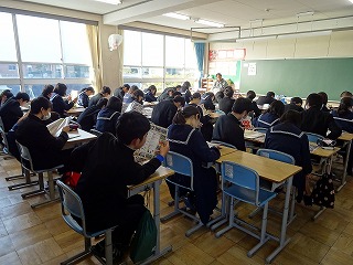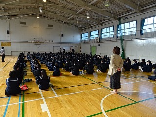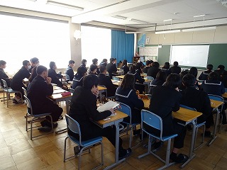 日差しのぬくもりを感じながら、きれいに掃除された教室で2学期最後の学活が行われました。その後、体育館で学年集会を行い、各クラスの室長から2学期を振り返り、クラスの様子と3学期に目指すクラスの姿を話してもらいました。さらに担当の先生からさまざまな話がありました。この冬休みは今までとは違い、自分の進路に向けた最終の準備をする時間となります。一日一日を大切に過ごしてほしいと思います。身体を大事に、そして家族の方と過ごす時間も大事に有意義な冬休みにしてください。1月8日にみなさんの元気な姿が見られることを願っています。よいお年を。