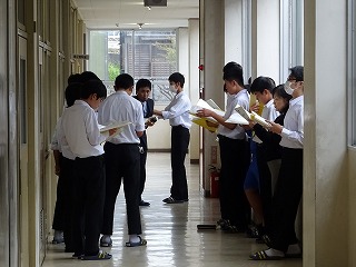 昨日から文化祭に向けた合唱練習が始まりました。体育館での2年生の学年合唱曲「大切なもの」は、体育館中に響き渡る素晴らしい声…とまではいきませんでしたが、これからの練習で文化祭当日にはきっと素晴らしい歌声を聴かせてくれることでしょう。また各クラスの練習では、歌詞を見ながら歌っているクラスもあり、不安な思いもありますが、文化祭当日には完成度を上げた合唱を披露してくれることを期待しています。