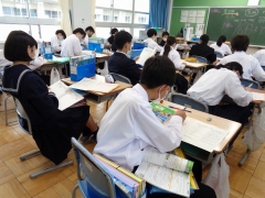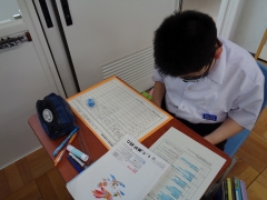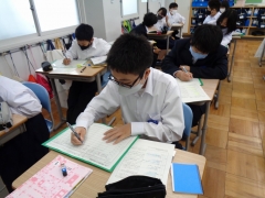 本日、学活の時間で中間テストに向けてのテスト計画を作成しました。中学校に入学し初めての定期テストになるので、どのように勉強に取り組めば良いかの話を聞き、目標を決め、計画を立てました。より良い結果を出せるように集中して学習に取り組みましょう。