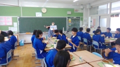 今日の給食中に、栄養教諭の樽井先生から、今月の献立メニューである「骨こつメニュー」についての紹介がありました。20歳までに蓄えた栄養がその後の骨密度に大きく影響しますが、成人してからは骨密度を増やすことが難しくなるとのこと。まさに中学生の今が骨密度を増やすチャンス!