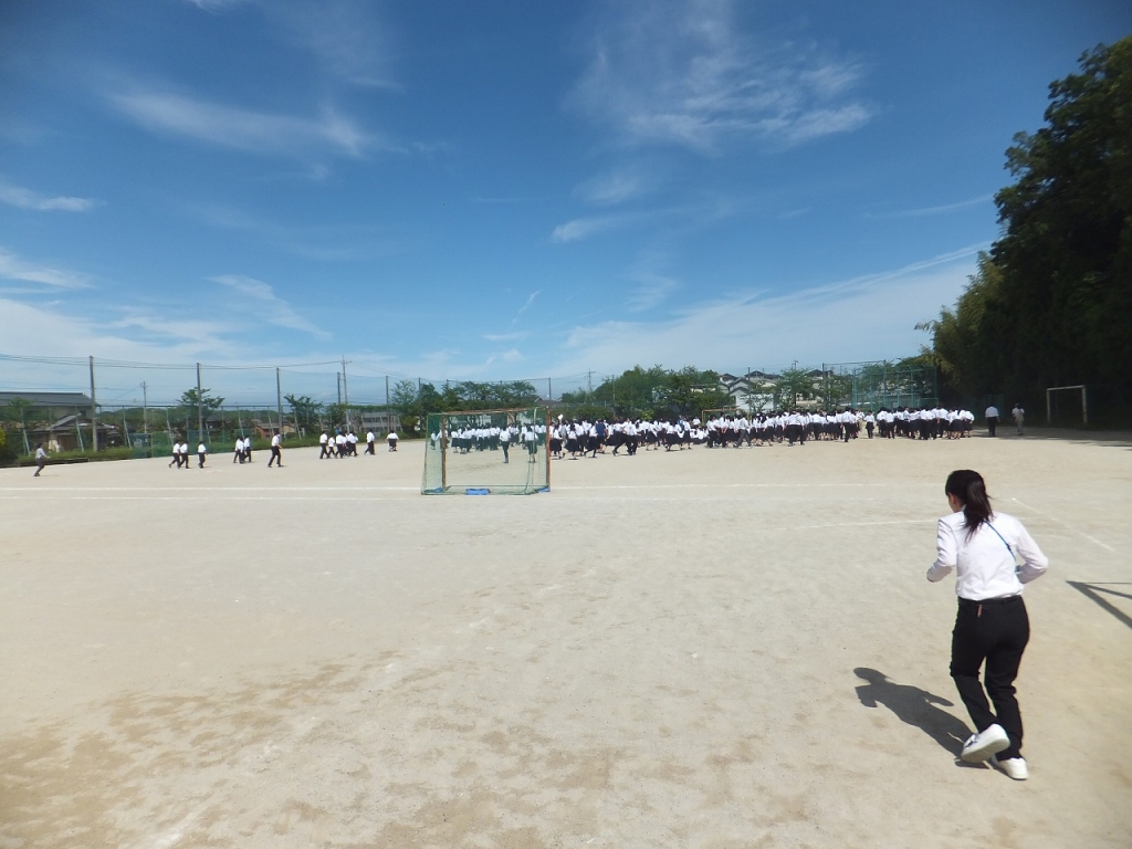 急いでグランドへ集合する生徒たち。