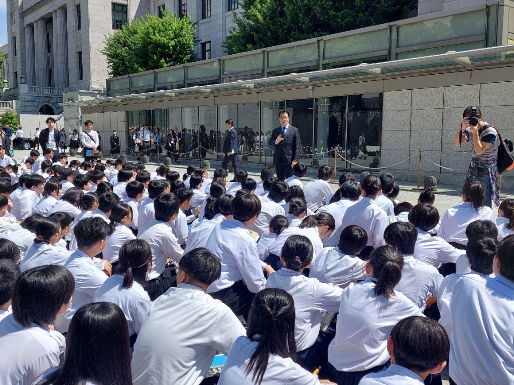 国会議事堂に着きました。中に入る前に、四日市市にゆかりのある衆議院議員さんから、投票をはじめ政治に参加すること、興味をもつことの重要性についてわかりやすくお話をいただきました。