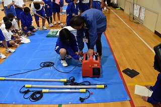 また、その倉庫の中にある、発電機の使い方や、簡易トイレの作り方などを実際に体験しました。