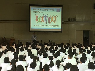 KDDI株式会社から講師の先生をお招きして、【ケータイスマホ安全教室】を行いました。