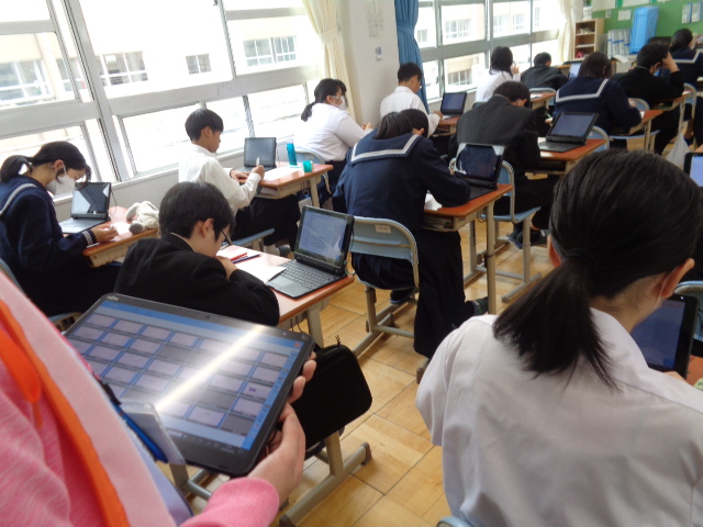 子どもたちの画面は先生のタブレットで一括管理しています。