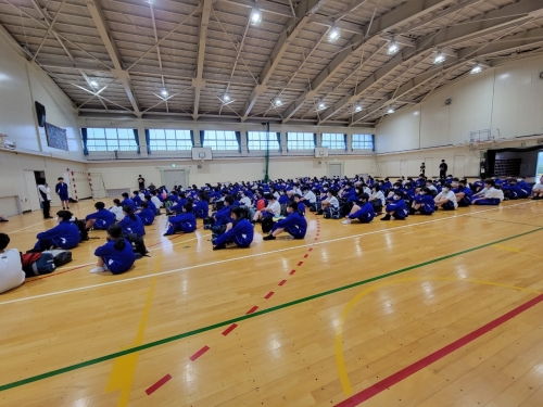 余裕を持って登校でき、予定の5分前には点呼が完了しました。出発式も時間通りに始めることができました!「自分たちで考えて動く」これがさっそく実践できていますね!2日間頑張りましょう!