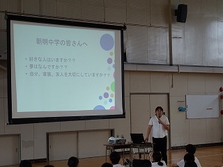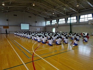 本日3年生は6時間目に体育館で、三重県立総合医療センターより井澤先生をお招きし、性に関する教育講演会を実施しました。今後自分たちが生きていく中で、性に関して「自分には関係ない」ということではなく、必ず直面するときがくるという視点から、性に関するさまざまな事例を交えながら大変わかりやすく具体的にご講演いただきました。