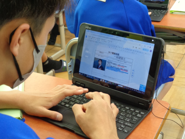 11月の職場体験学習に向け、2年生が職業調べをしていました。