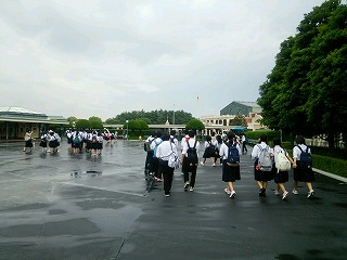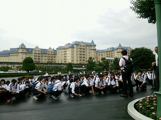 国会議事堂も、高速道路も空いていたおかげで、予定より1時間も早くディズニーに到着しました。また、日頃の行いがよいためか、雨も上がり、空も明るくなってきました。今からディズニー班で8:30までたっぷり楽しんで来ることでしょう。