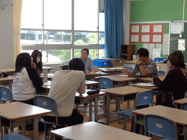 まずは、校区で働く先生たちが顔見知りになり、子どもたちの育ちをつなげていくことがねらいのひとつです。