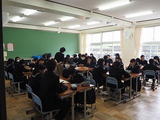 今日はさいころトーキングをしました。さいころを転がして出た目の数進み、止まったマスに書いてあるお題について話をしました。中学校の生活で頑張りたいことや、自分の特技を話したり、部活がない休日は何をしているかなど、相手のことを知る良い機会となりました。新しい学年が始まって今日で一週間!!ちょっと疲れが出てきていますね。明日は金曜日です。あと1日頑張りましょー!