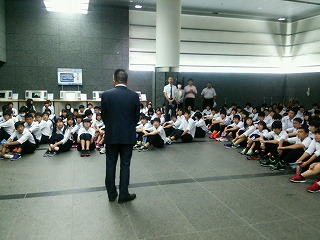 本校の卒業生で、衆議院議員の中川康洋さんに、出迎えていただき、ごあいさつしていただきました。