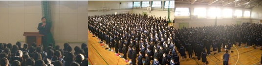 平成27年度最後の学期となる3学期の始業式が体育館で行われました。校長先生からは,新年のあいさつの後,日本の先人から学ぶ『真心』の素晴らしさ,大切さを話されました。
