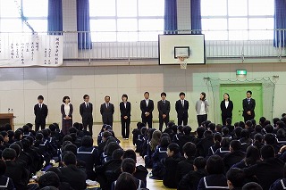 いよいよ今日から新年度がスタートしました。今年は満開の桜とともにみなさんを迎えることができませんでしたが、緊張の面持ちで新クラスの発表を待つみなさんの表情はとても印象的でした。学年の先生の発表をはじめ、担任の先生、教科担任の先生の紹介がありました。3年生のみなさん、今年は義務教育最後の年であるとともに、進路を決定する大切な1年です。仲間とともに励まし支えあいながら、学校生活を送れるといいですね。